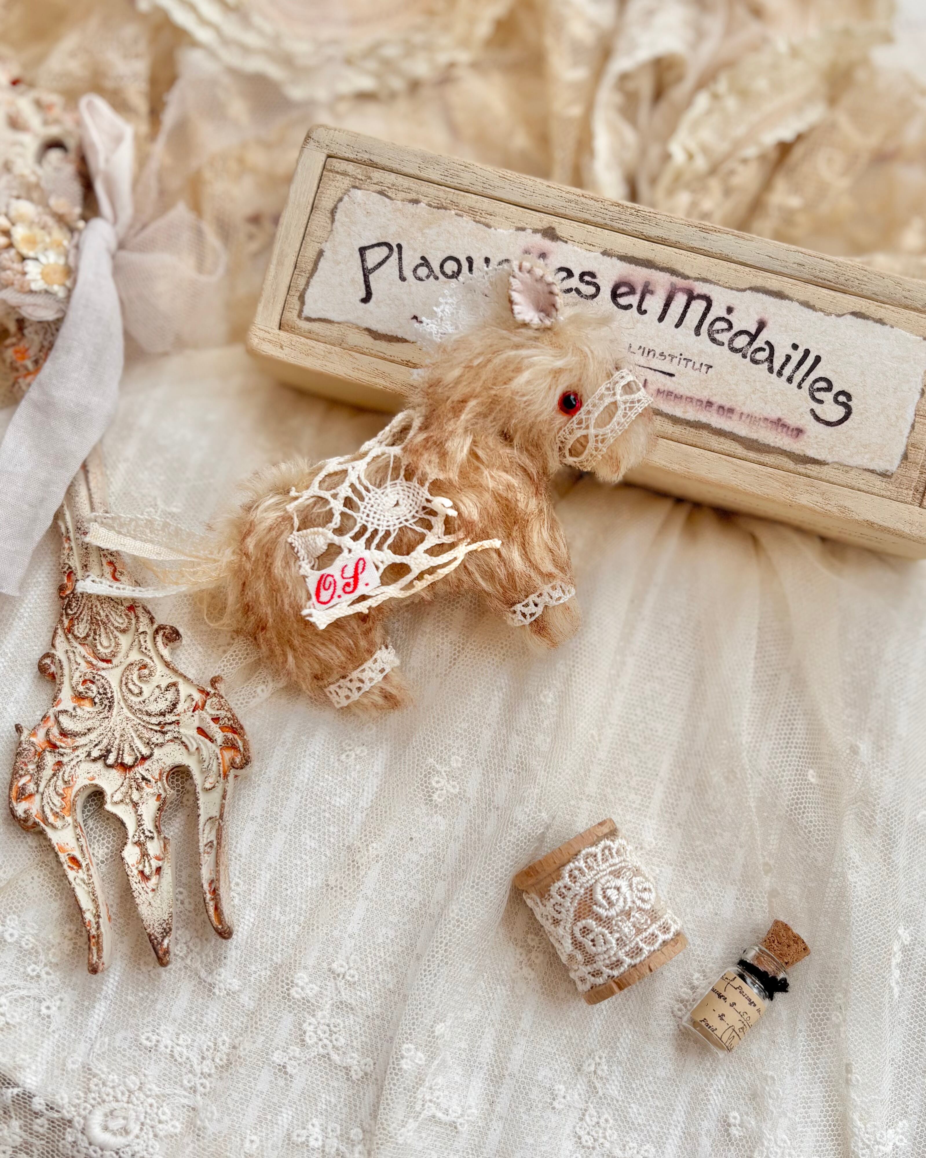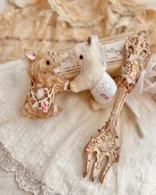 レースやリネンなど、経年による色変わりや汚れある部分もございます。