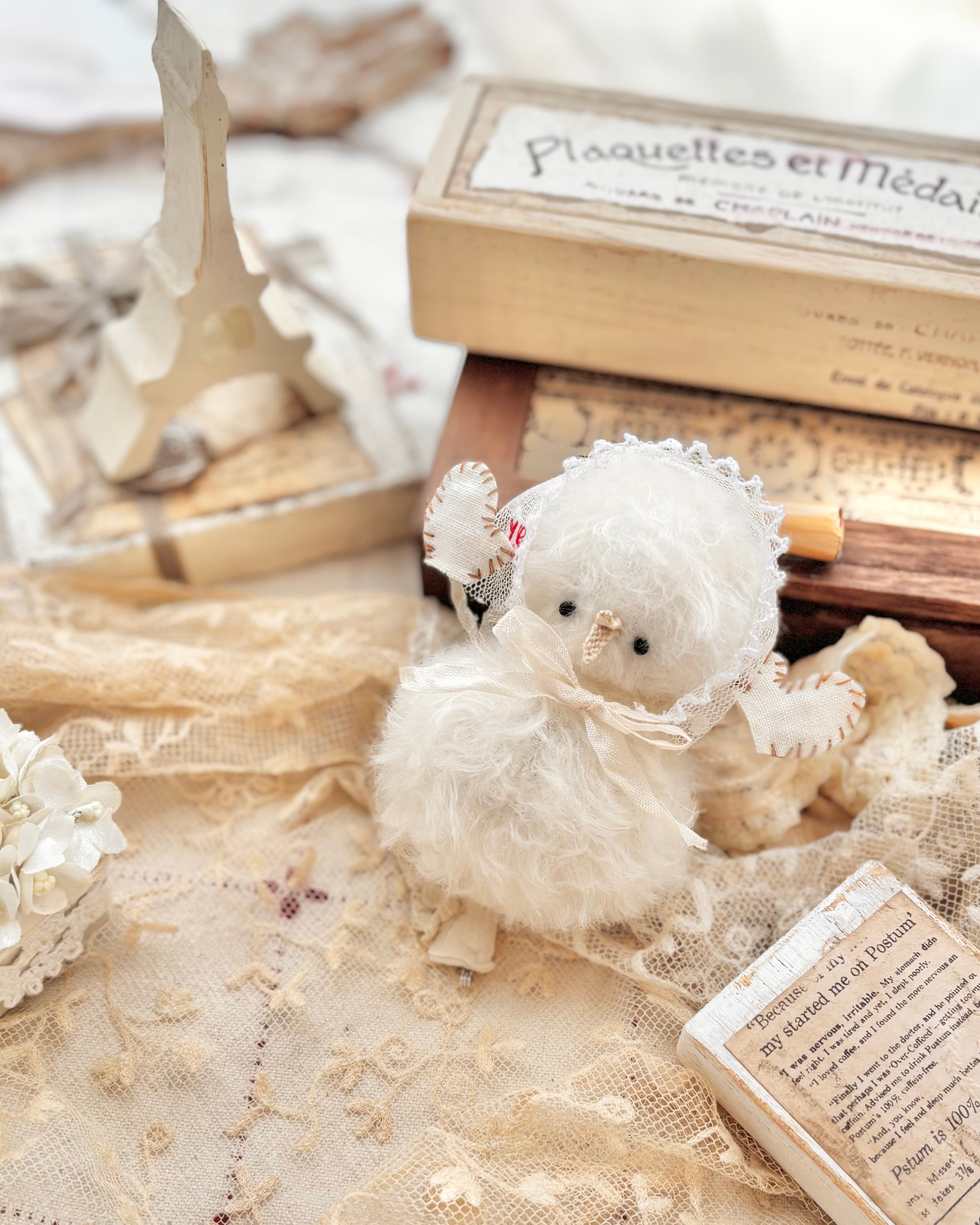 レースやリネンなど、経年による色変わりや汚れある部分もございます。